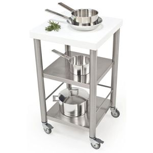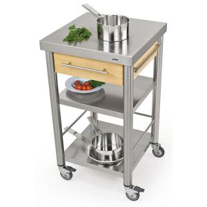 Intégralement en acier ou avec des inserts en bois et une table, les chariots de cuisine Joko incarnent la passion de l'entreprise pour un langage clair et l'utilisation de la technologie moderne appliquée au monde de l'art culinaire.